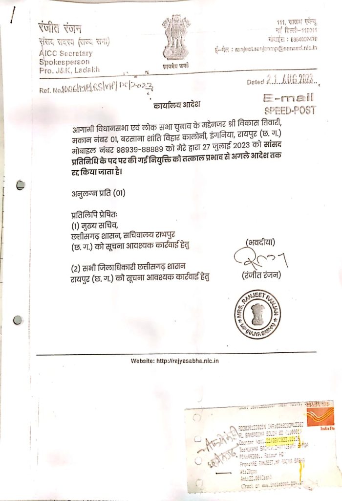 CG News: विकास तिवारी को एक और झटका, कांग्रेस से 6 साल के निष्कासन के बाद सांसद प्रतिनिधि पद से भी हटाया