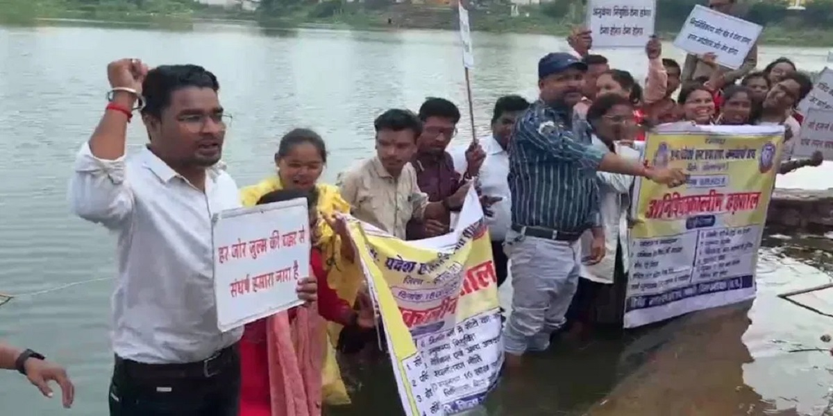 कबीरधाम जिले के स्वास्थ्यकर्मी ने छत्तीसगढ़ में बड़े मंदिर तलाब में जाकर जल सत्याग्रह किया. उनका आरोप है कि अपनी जायज मांगों को लेकर पिछले 23 दिनों से वे हड़ताल पर हैं, लेकिन शासन उनकी मांगों को नजरंदाज कर दबाने का प्रयास कर रही है.