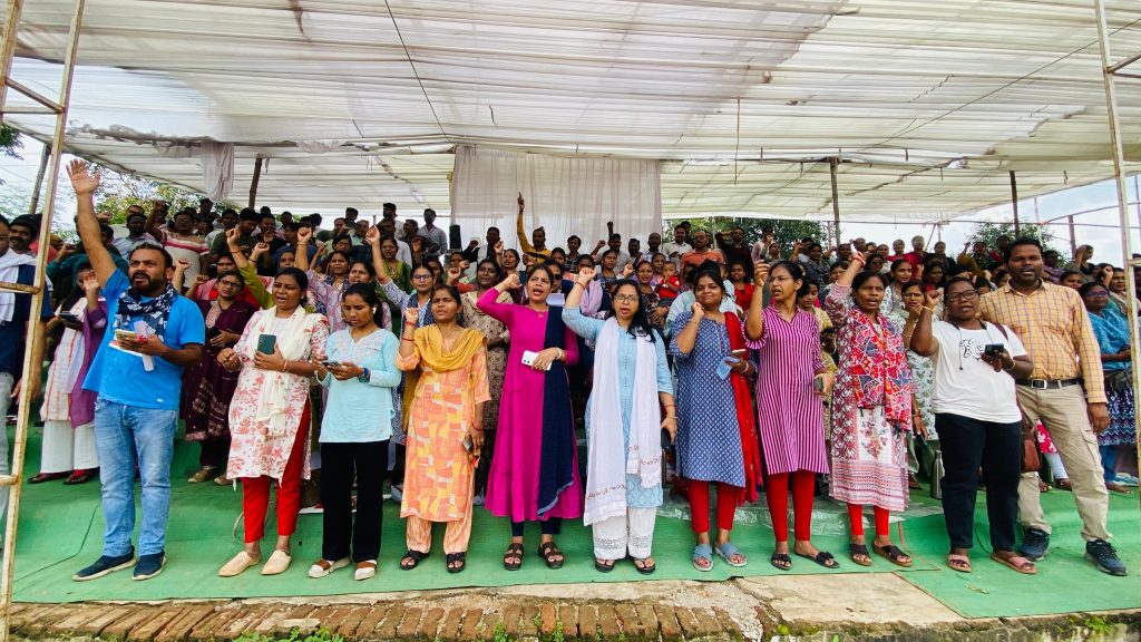 जिले के 500 से अधिक राष्ट्रीय स्वास्थ्य मिशन (एनएचएम) कर्मचारियों ने आज प्रधानमंत्री श्री नरेंद्र मोदी जी को उनके 75वें जन्मदिन पर हार्दिक बधाई दी। साथ ही, अपने 31 दिन से चल रहे अनिश्चितकालीन आंदोलन के माध्यम से राज्य सरकार को “मोदी की गारंटी” का हवाला देते हुए लंबित वादों को पूरा करने की मांग दोहराई।