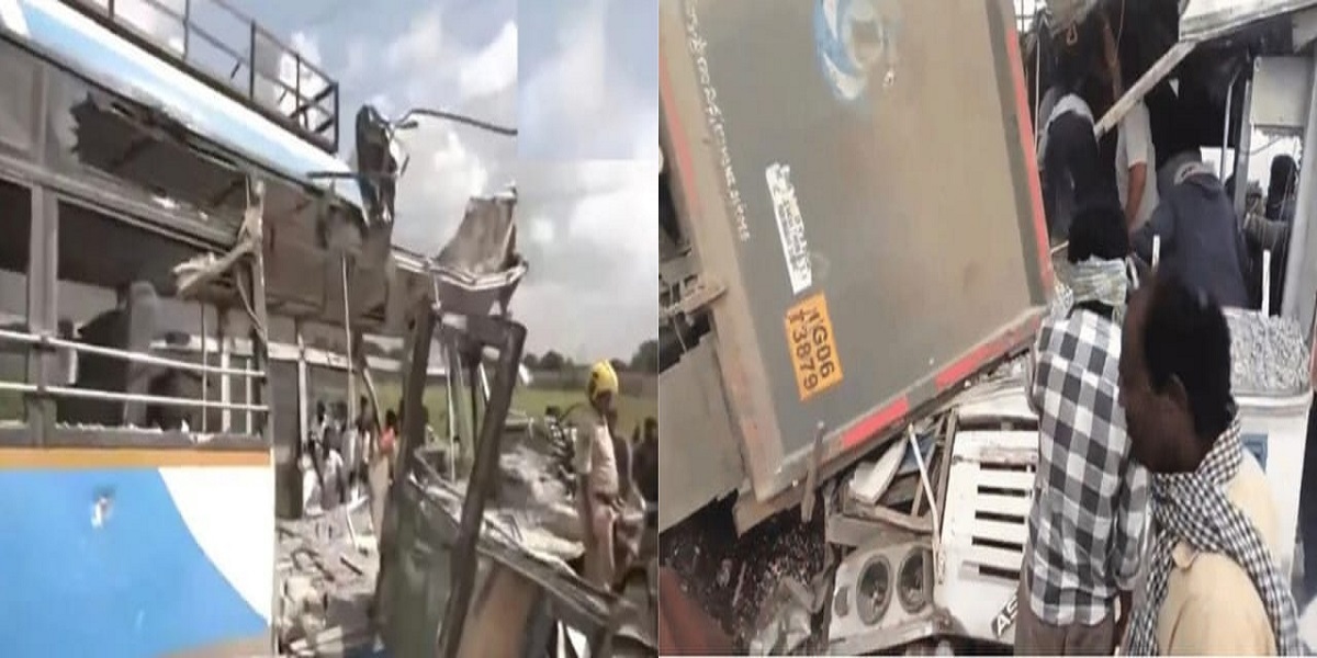रंगारेड्डी: जिले के मिर्जागुड़ा में टीजीएसआरटीसी बस को एक टिप्पर ने टक्कर मार दी है। हादसे में 20 लोगों की मौत की खबर सामने आई है। घायलों को पास के अस्पताल में भर्ती कराया गया है। जानकारी के मुताबिक हादसा सुबह 5 बजे के आसपास हुआ है। कंकड़ से भरी लॉरी की टक्कर के बाद बस के ऊपर और अंदर भी कंकड़ भर गया। स्थानीय पुलिस ने कहा, “रंगारेड्डी जिले के चेवेल्ला पुलिस स्टेशन की सीमा के अंतर्गत खानपुर गेट के पास एक TGSRTC बस और ट्रक के बीच सड़क दुर्घटना हुई। कई यात्री घायल हुए हैं। यह घटना आज सुबह हुई। हम घटनास्थल पर पहुंच गए हैं और अधिक जानकारी बाद में दी जाएगी।”