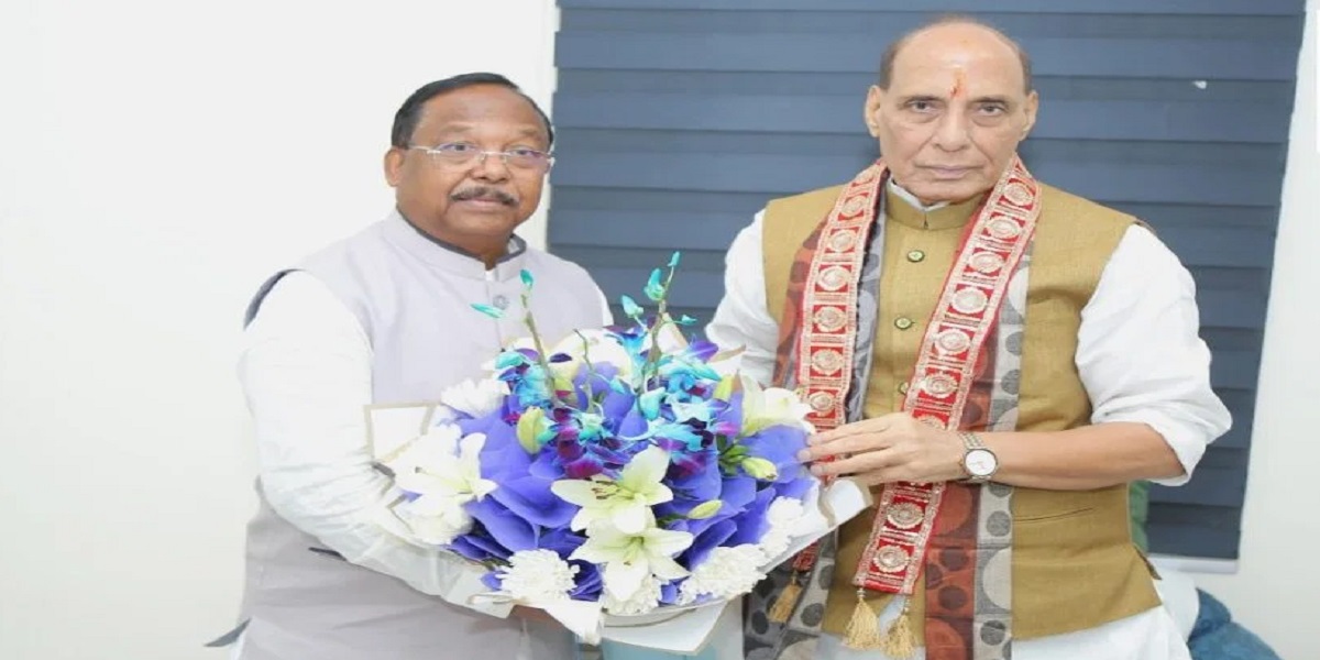 रायपुर : छत्तीसगढ़ के कृषि मंत्री और वरिष्ठ भाजपा नेता रामविचार नेताम ने केन्द्रीय रक्षा मंत्री राजनाथ सिंह से उनके निवास कार्यालय पर मुलाकात की.
