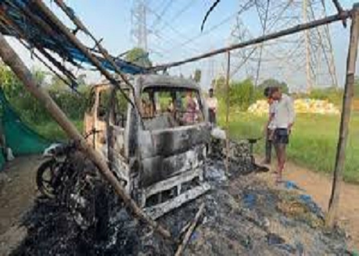 उरगा थाना क्षेत्र के ग्राम पंचायत तिलकेजा में गुरुवार-शुक्रवार की दरमियानी रात अज्ञात लोगों ने एक इको वाहन और दो मोटरसाइकिलों को आग लगा दी. वाहन मालिक नरेंद्र उरांव ने आगजनी से लाखों रुपए के नुकसान की बात कहते हुए इसे सोची-समझी साजिश का हिस्सा बताया है.