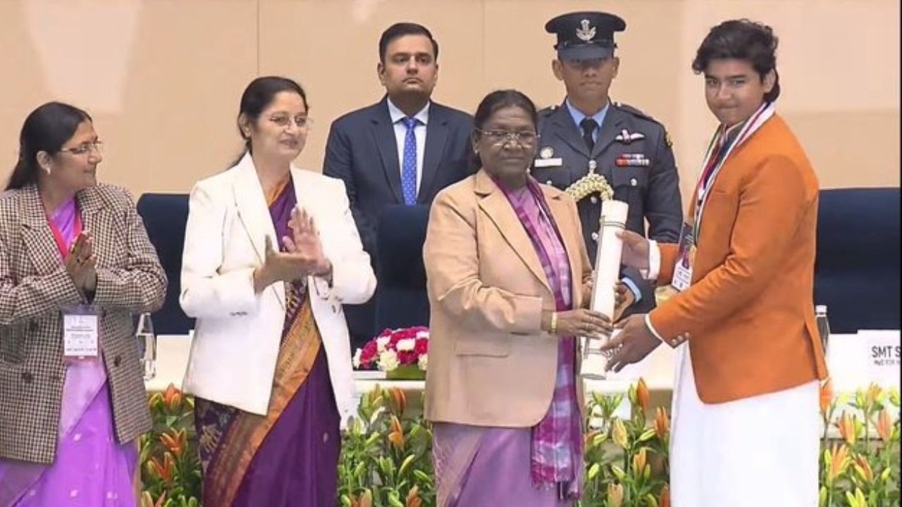 Vaibhav Suryavanshi felicitated with the national child award by the President of India.